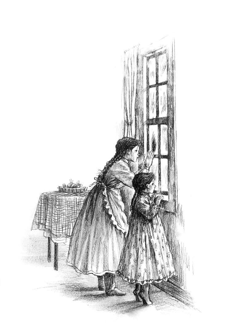 卡瑞挨着格蕾丝,睡在靠近火炉烟囱的床上。这时她也醒了,从被窝里探出脑袋,急切地看了看劳拉。到底有多冷呢?卡瑞试探性地哈了口气,虽然床离烟囱很近,哈出的气却马上凝成了白雾。好在房屋建得很好,没有一丁点儿雪花从墙缝或屋顶钻进来。