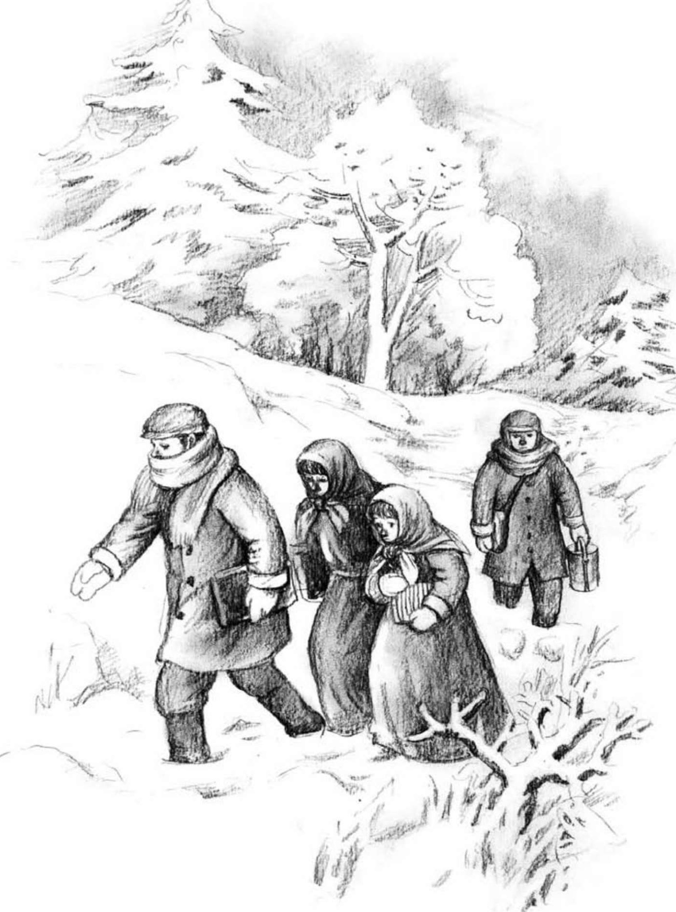 阿曼佐深一脚浅一脚,紧跟在洛伊尔身后;爱丽丝紧跟在伊莉莎·简后面。这是一条被雪橇碾压出来的小路,道路两侧的积雪堆得很高。他们要顺着这条路下一个长长的山坡,走过一座小桥,穿过一英里长的积雪的树林,才能赶到学校。