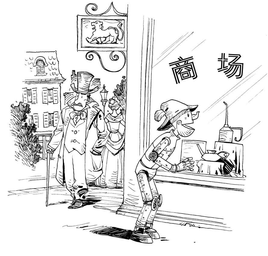 他看到什么了?哎哟,他看到了橱窗里陈列着最近上市、昂贵的“锃亮”牌金属擦油。
