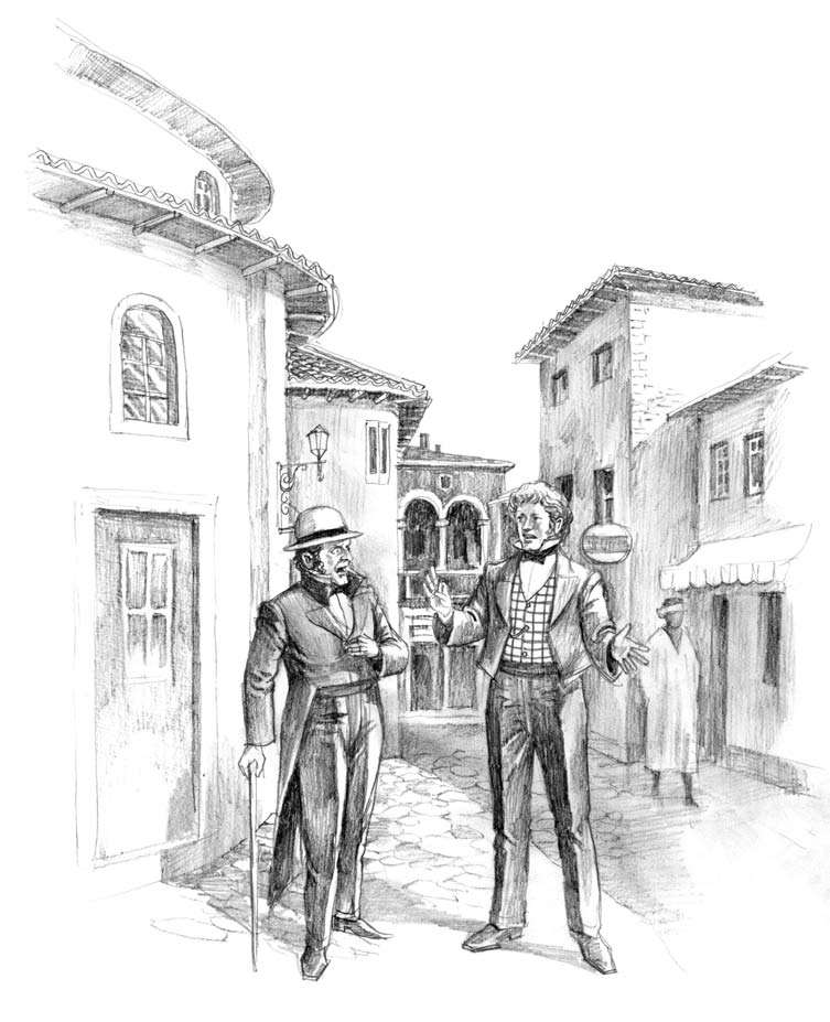 他对领事说:“先生,我现在完全有把握了。他已经落入我的手中。他假装成一个要用80天环游地球的怪人来迷惑众人。”