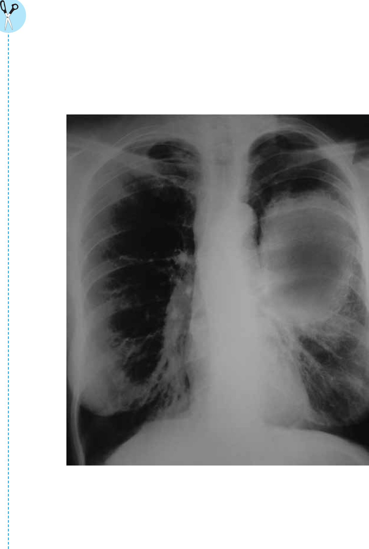 你在试着戒烟吗?也许“角色扮演”这种方法能够帮助你戒烟。找一位好朋友阅读以下关于肺癌的段落,撕掉下一页上的肺部X光片。然后,让你的朋友利用这些信息,扮演一位医生,向你提出戒烟的建议。你应该尽量地融入角色,问“医生”问题,并向他解释自己准备如何戒烟。