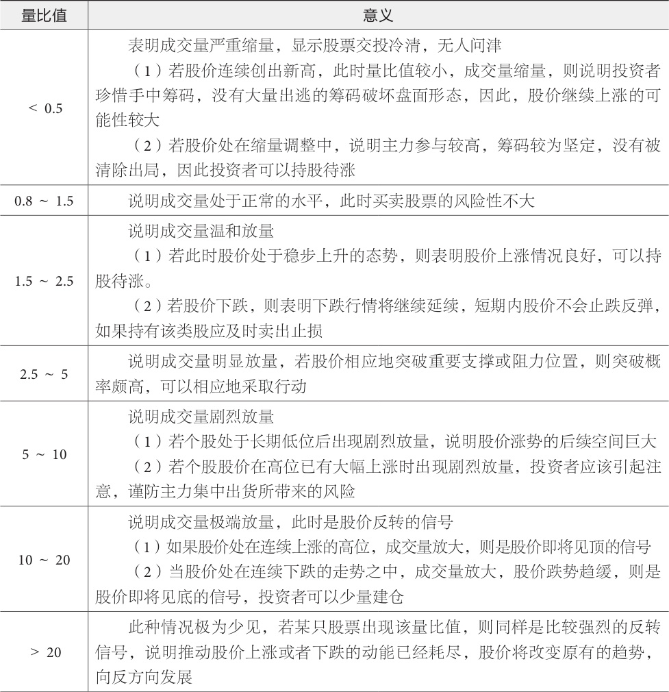 表1-2 量比值的市场意义