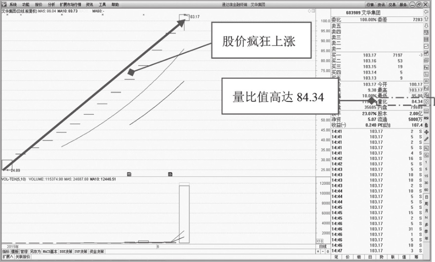 如图1-18所示,为艾华集团(603989)的2015年5月15日至5月底走势图。从图中可以发现,该股属于新上市不久的个股,走势极不稳定,后市走势不明朗,技术不娴熟的投资者不宜参与买卖该类股。