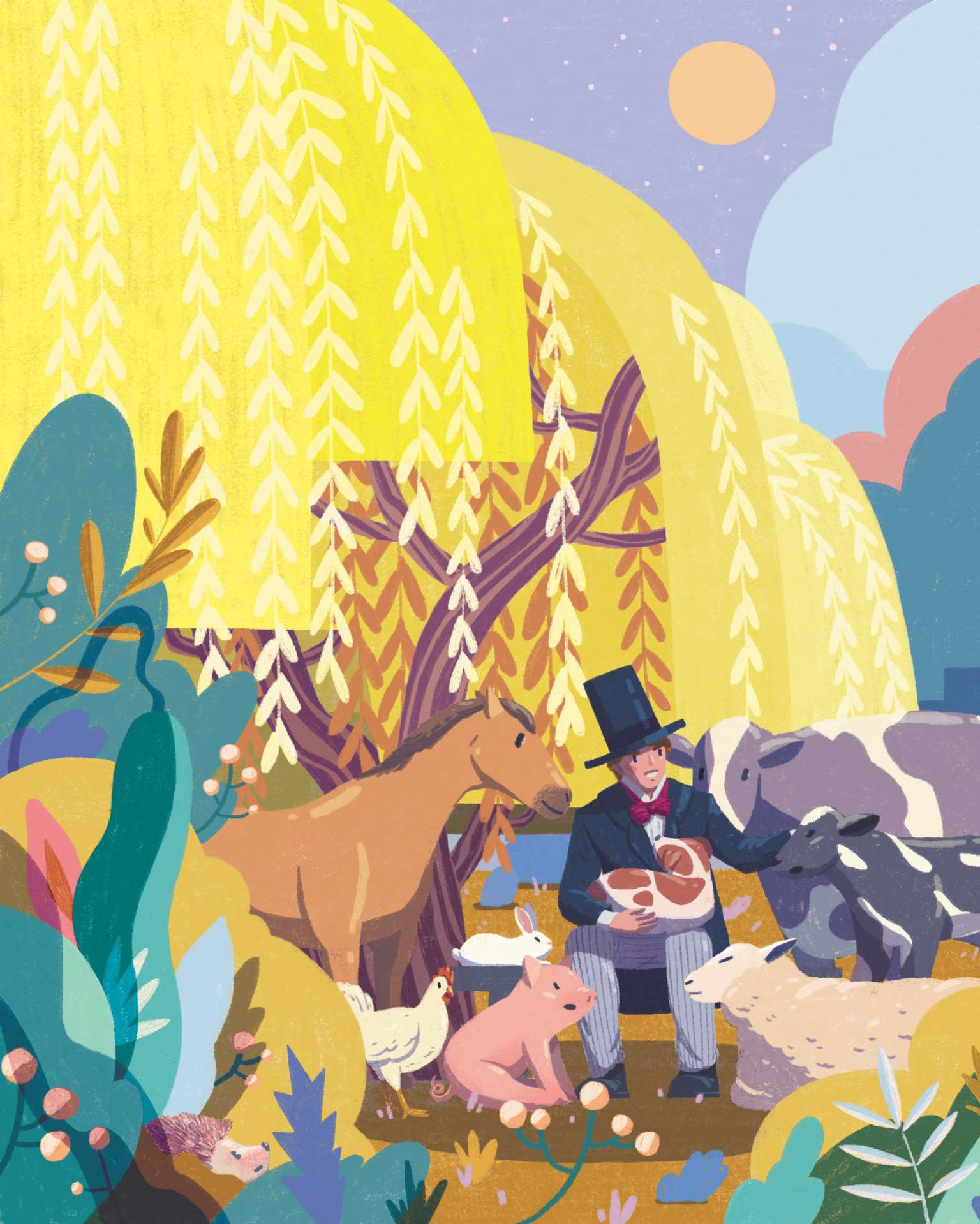 久而久之,医生家里的动物越来越多,看病的人却越来越少。到最后,他一个病人也没有了,除了一个卖猫粮的人,因为这个人对任何动物都毫不介意。只不过,这个卖猫粮的人并不是很富有,而且他每年只生一次病,还只在圣诞节的时候。那时,他就付给医生六便士,买一瓶药。