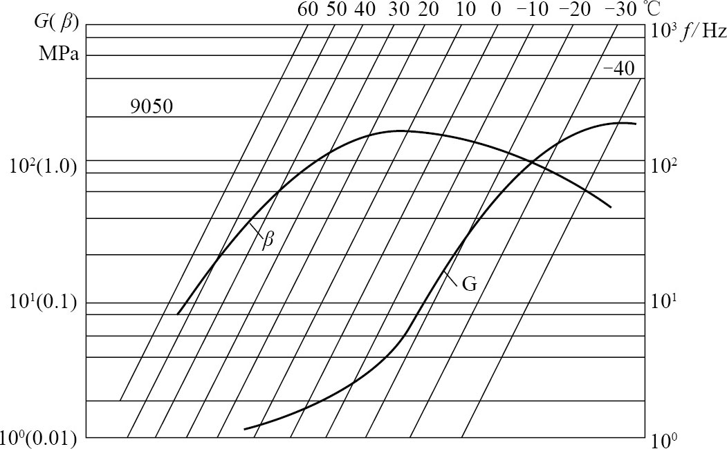 图2.12 9050型橡胶阻尼材料的诺谟图