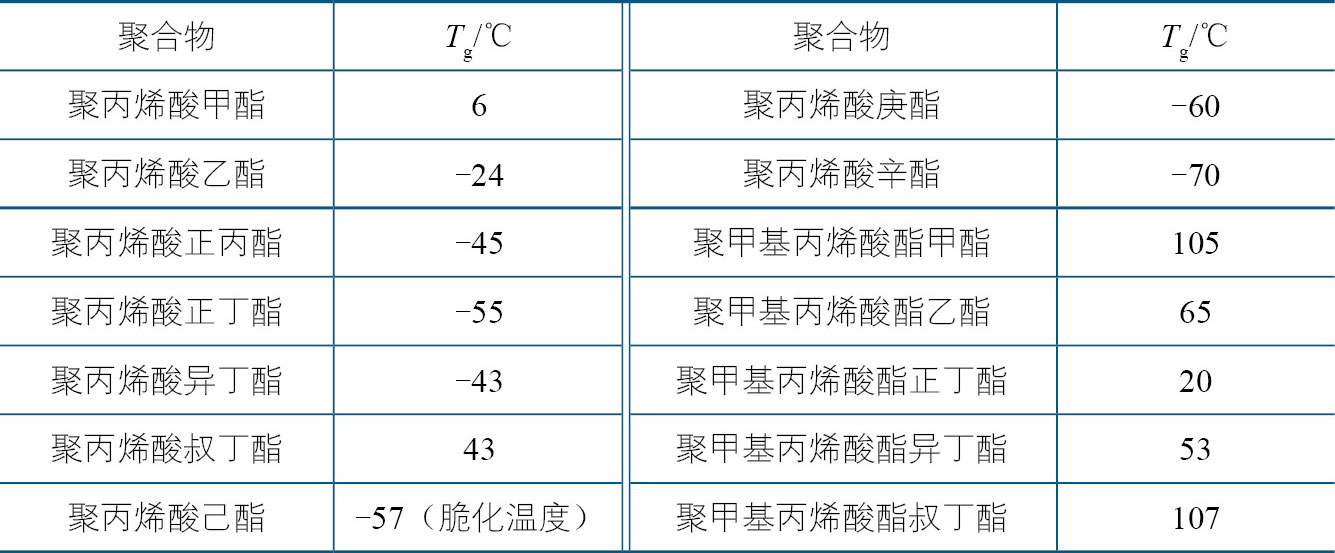 表2.5 甲基丙烯酸酯类均聚物的T g 值