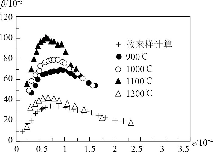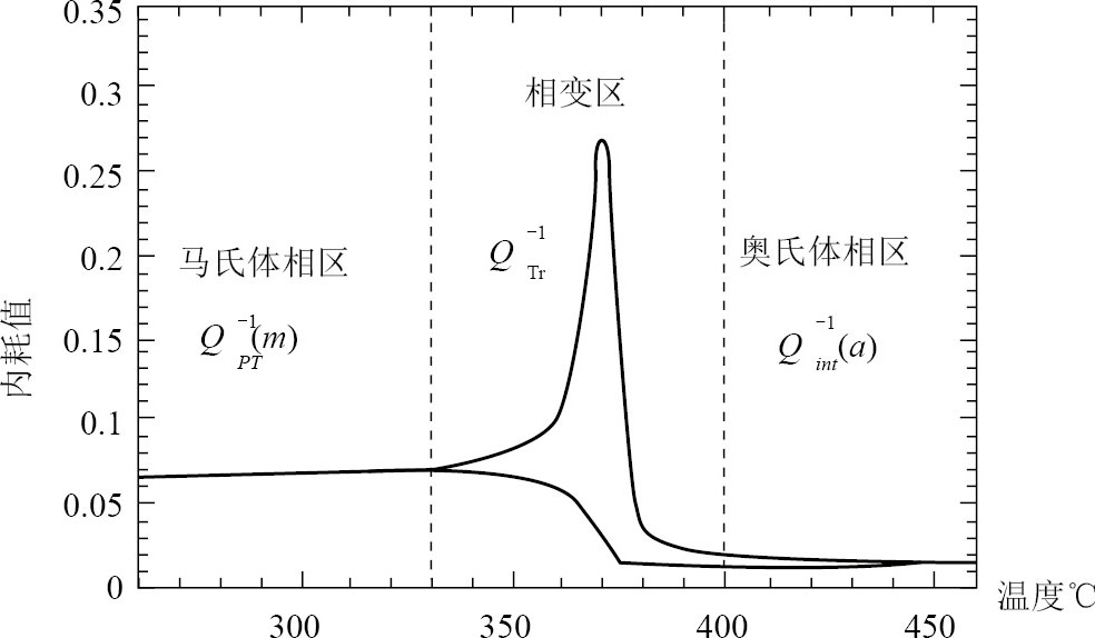 在相变区内出现了阻尼的峰值,这受变温速率影响很大,当温度恒定时,峰值不明显。因此,如果所选取的材料在恒温或温度变化不大的环境下工作,那么不能为了追求高阻尼而将工作温度选择在相变区。