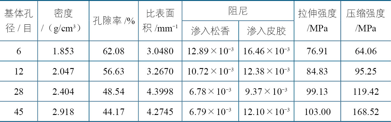 表2.7 ZA27泡沫金属基复合材料的结构参数和性能参数