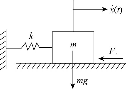 在实际的振动系统中,除上述提到的阻尼外,还有其他能量损耗,如轴承内或零件接合处的摩擦作用,如图1.5所示。库仑阻尼又称干摩擦阻尼,节点、支座连接间的摩擦阻尼是由构件与支座间的相对运动所产生的。质量