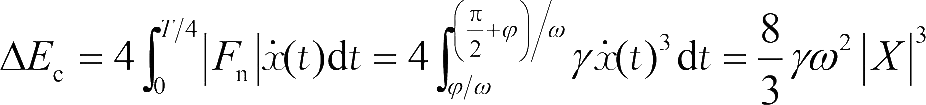 根据能量等价原则,式(1.7)与式(1.12)相等,可以得到库仑阻尼的当量黏弹性阻尼系数为