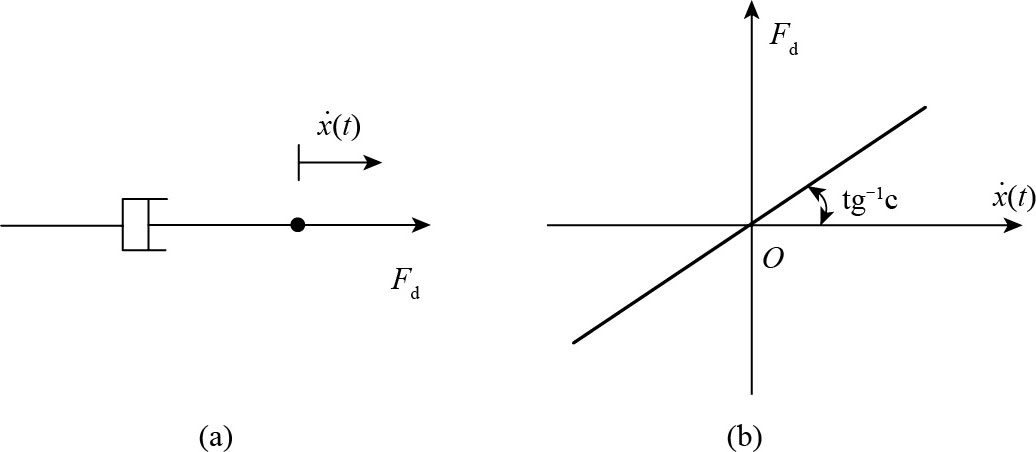 当物体以较大的速度在黏性较小的流体(如空气、液体)中运动时,如图1.3(b)所示,流体内部的速度梯度、流体和管壁的相对速度均会因流体黏滞性产生能耗及阻尼作用,这就是由流体介质所产生的阻尼。流体阻尼力
