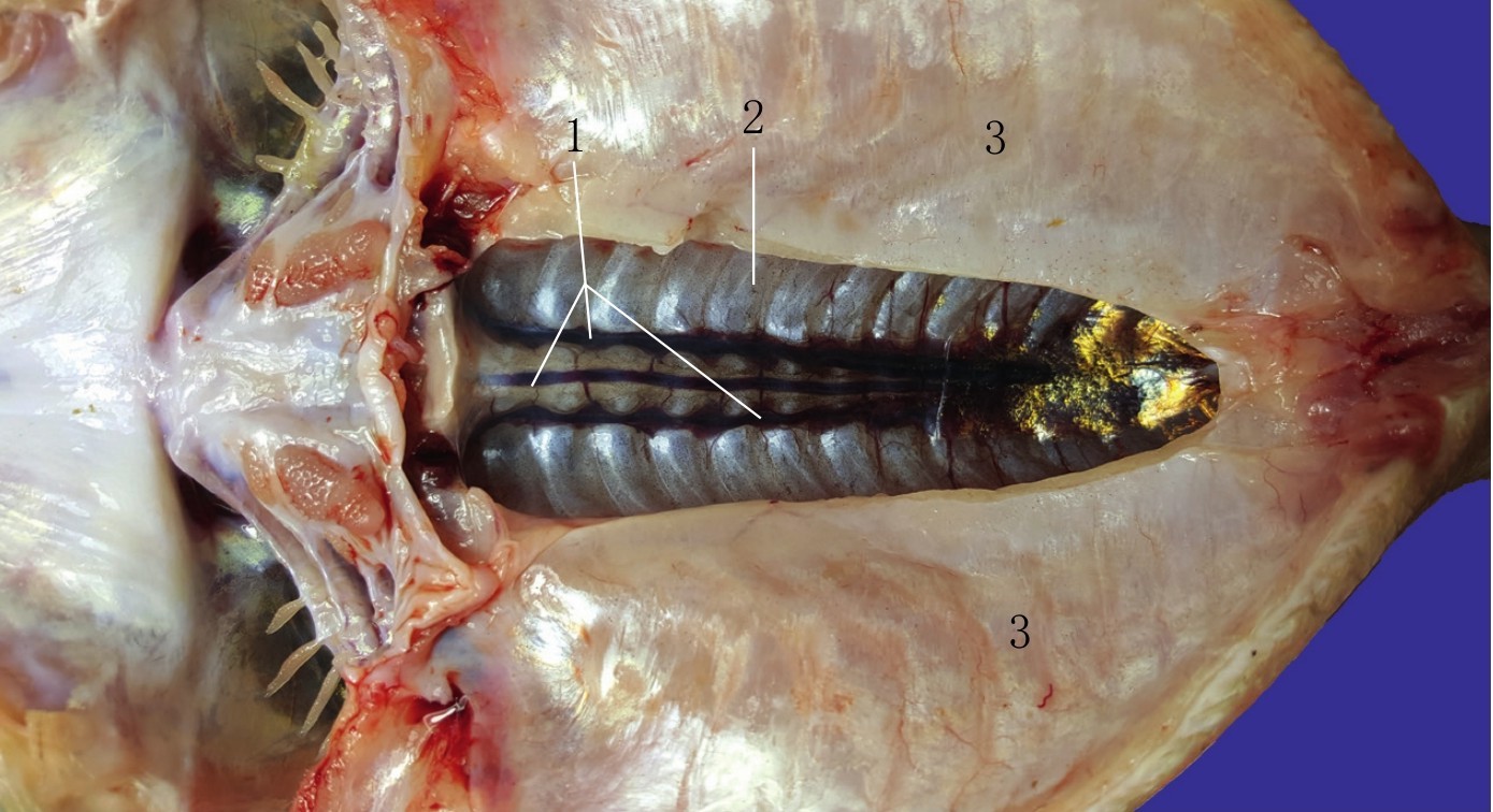 1—脊柱血管;2—脊柱腹侧腔;3—体壁
