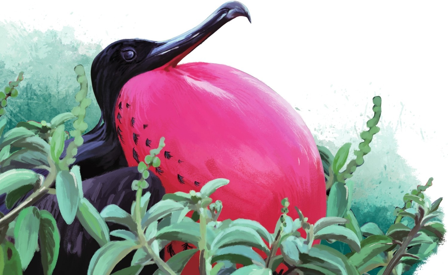 这只雄性军舰鸟已经做好了交配的准备,它鼓起红色的喉囊,向雌性发出明确的信号。这个红色喉囊会让雄性军舰鸟的魅力大增,雌性会被这种魅力深深吸引。