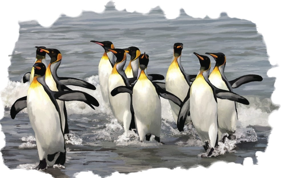 企鹅是群居性很强的动物,无论是在陆地上还是在海里,它们都会团结在一起。大多数时间里,它们不需要进行言语交流也可以保证自己各种活动的安全。假如有一只企鹅感觉饥饿准备捕食,其他企鹅就会与它一起出发;如果这只企鹅在下海之前发现疑似天敌海豹的身影而离开海边,其他企鹅就会不问理由地同它一起离开。