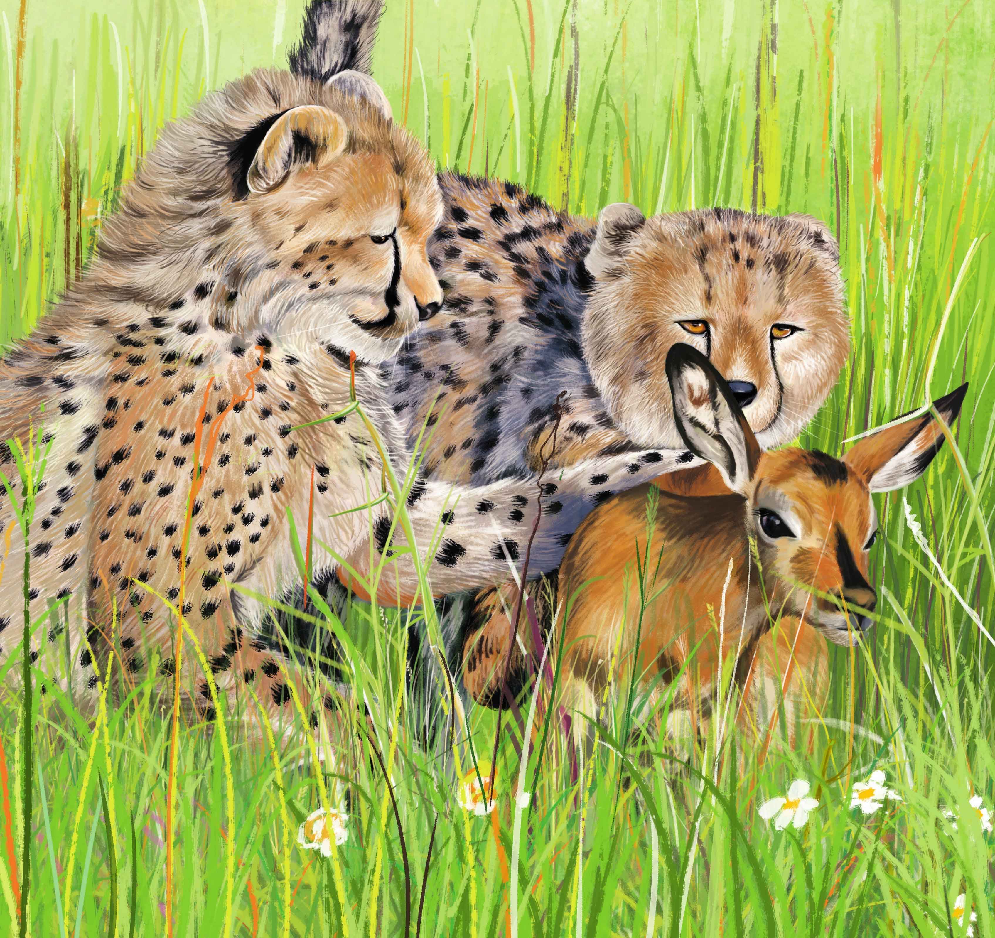 小猎豹们正追赶一只受伤的小羚羊,它们要在