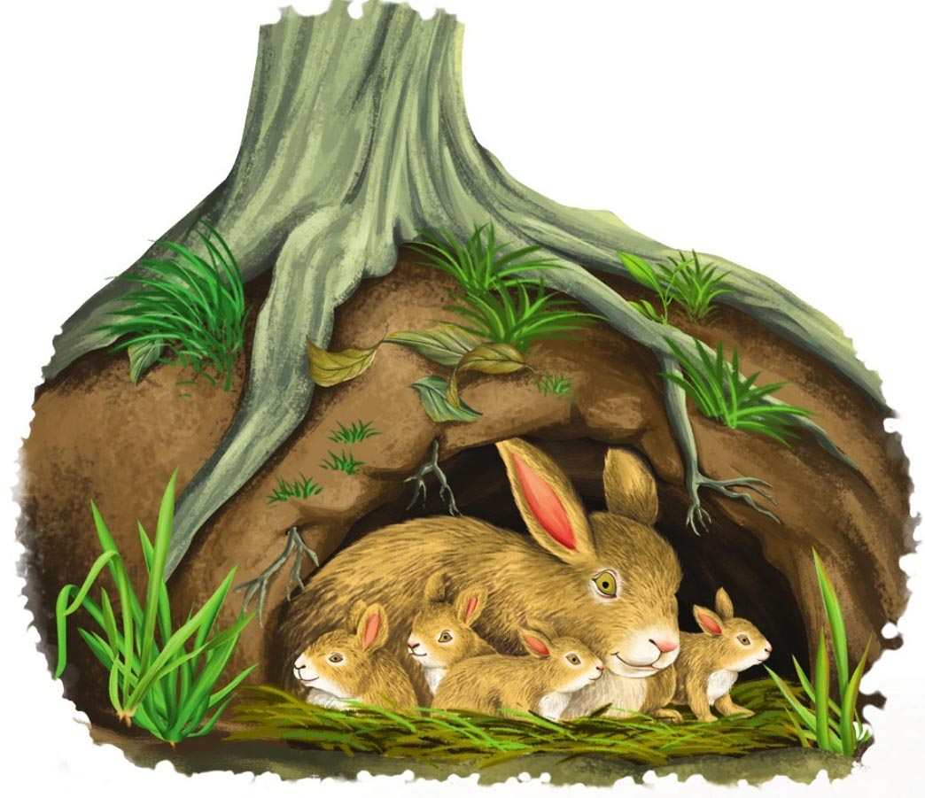 穴兔是一种会挖掘洞穴的动物。它们的家通常建在地下洞穴中。在洞穴的深处,穴兔会用细软的草和自己身上的绒毛为即将出生的宝宝做一个温暖的窝。