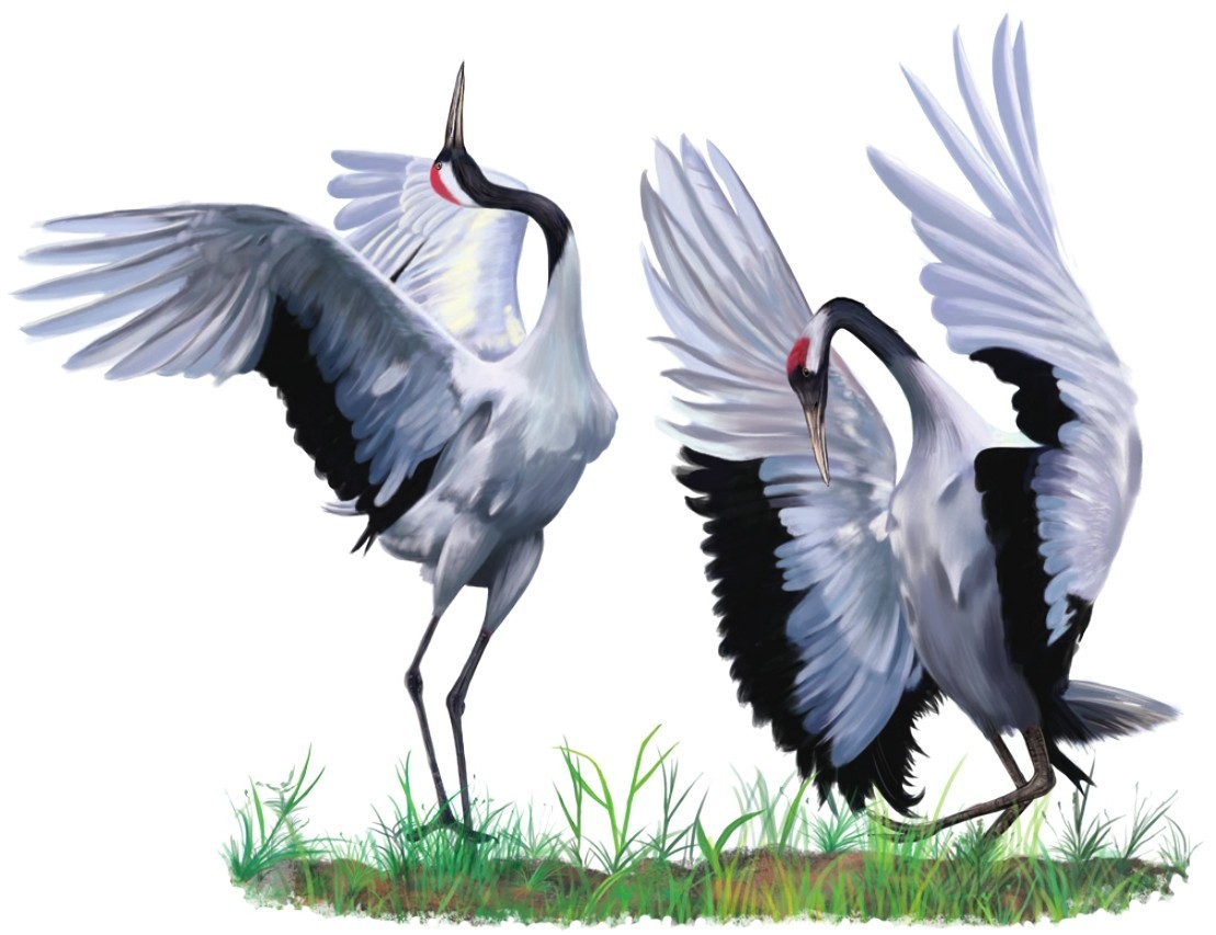丹顶鹤过着“一夫一妻”制的生活,配对后终生不分开。雄性丹顶鹤会用美妙的舞蹈向雌性求爱。舞蹈非常重要,所以雄性丹顶鹤会格外卖力。每年到了繁殖的季节,雌性和雄性丹顶鹤也会一起跳起舞蹈,用来增加“夫妻”之间的感情。