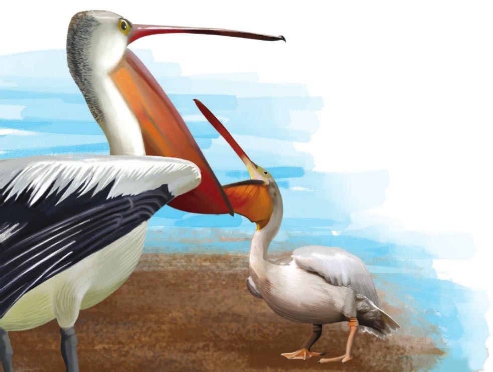 小鹈鹕刚出生的时候,鹈鹕妈妈将食物吐在巢中,供它们食用。等小鹈鹕稍长大一些,鹈鹕妈妈则让小鹈鹕把嘴伸到自己的嘴里或食道中直接取食半消化的食物。
