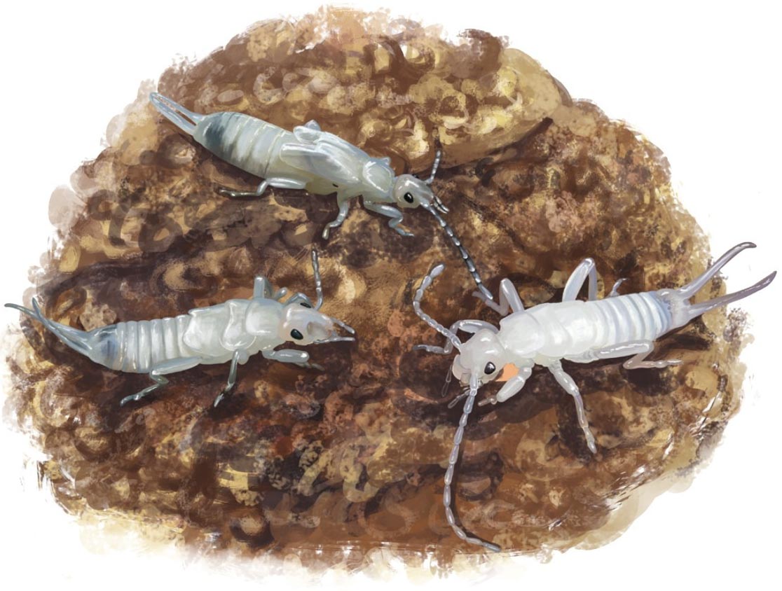 会抚养和哺育幼虫的昆虫实在太少了,能给我们留下深刻印象的就更加少之又少了。我现在要介绍一种会照顾幼虫的昆虫,它们叫蠼螋。蠼螋产完卵后就一直守在卵的周围,等待它们孵化。小蠼螋出生后一直躲在洞穴中,蠼螋妈妈把捕捉到的食物带回巢穴喂给它们。