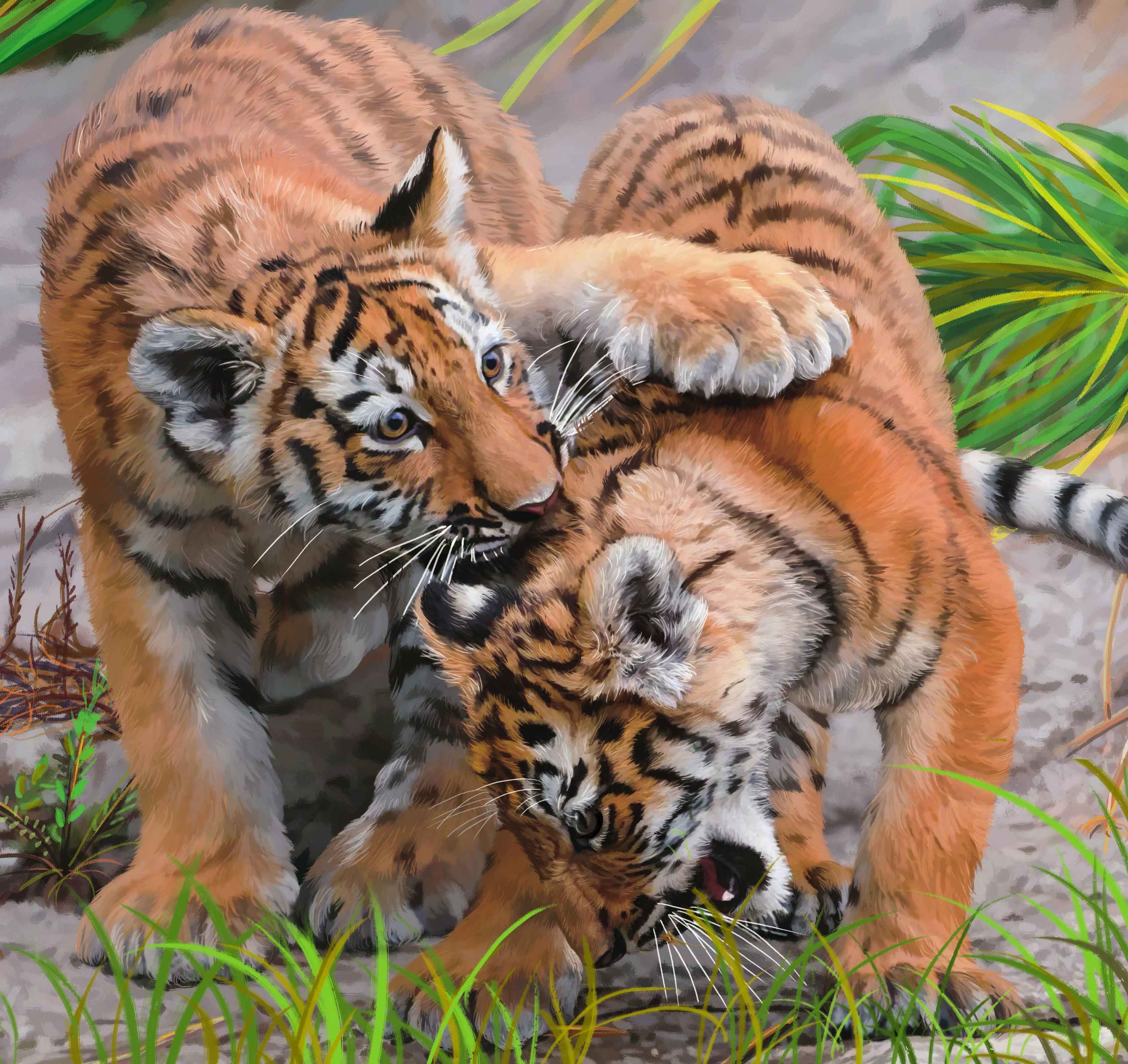 虎幼仔们每天花费大量时间练习捕猎技能,这为它们独立生活后能很好地适应自然环境以及成为优秀的猎手奠定了基础。