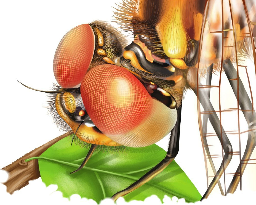 从外观上看,蜻蜓只长着两只突出的大眼睛,事实上,这两只眼睛由无数只小眼睛组成。蜻蜓是世界上眼睛最多的昆虫。它的眼睛很大,几乎占据了整个头部,每一只小眼睛都和视觉神经相连,使视野更加开阔。突出的眼睛可以轻而易举地观察到周围的动向,时时锁定猎物的方位。