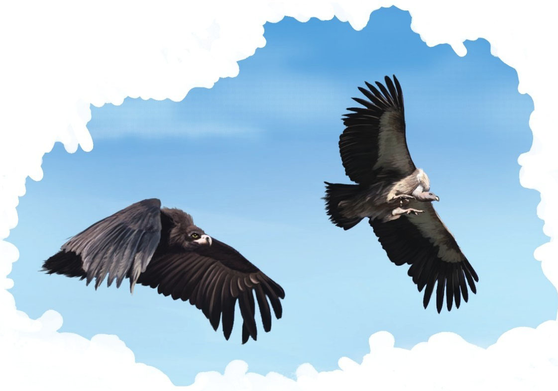 秃鹫在200多米的高空中翱翔。它们密切地关注着猎豹、狮子以及猎狗群的动向。猎食者在地面上捕猎的表演全被秃鹫看在眼里,可是,它们并不在乎表演有多精彩,而是在乎猎食者能留下多少残羹剩饭。秃鹫以猎食者丢弃的猎物和腐尸为食。