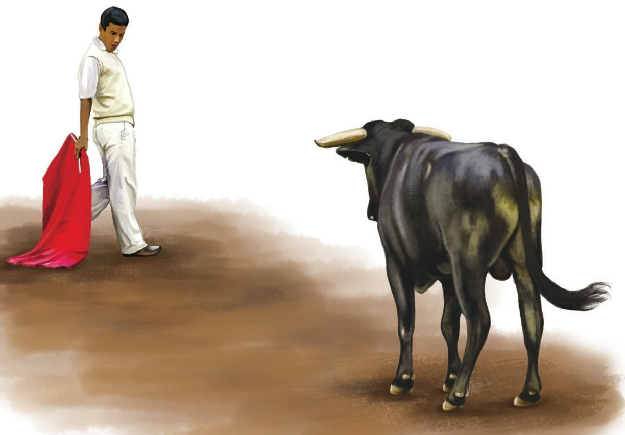 在斗牛场上,斗牛士用红布挑逗公牛,公牛疯狂地顶撞。难道公牛对红色真的很敏感吗?事实上,公牛和狗一样,对色彩的感知力很差。面对晃动的红布,公牛感觉自己受到了威胁,所以才会发动攻击。繁殖期的公牛脾气更加暴躁,只要它觉得对自己构成了威胁,即使你没有用红色刺激它,它也会顶撞。