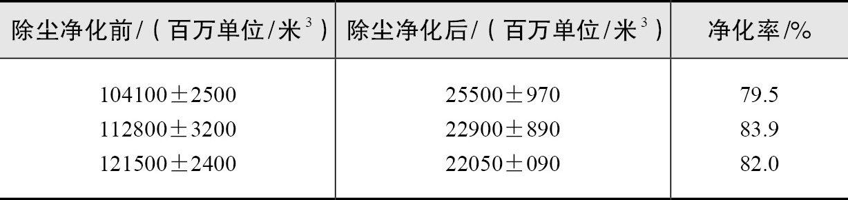 表2-2 除尘净化前后的禽舍内空气中微生物数量