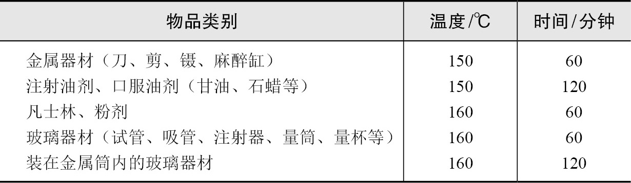 ① 不同物品器具干热灭菌的温度和时间不同,见表2-5。