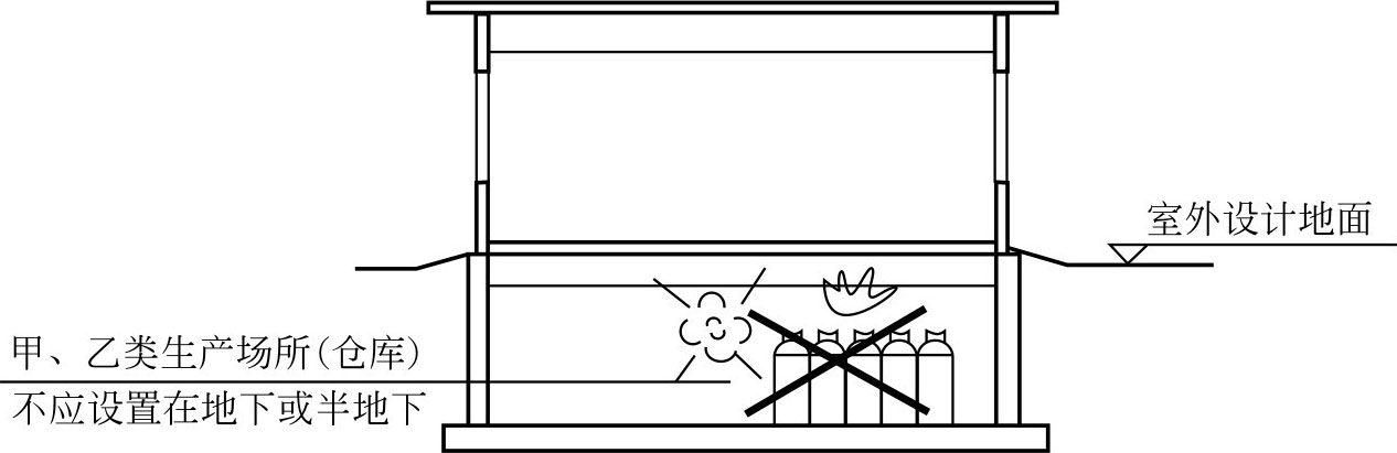 (4)甲、乙类生产场所(仓库)不应设置在地下或半地下,如图2-5所示。