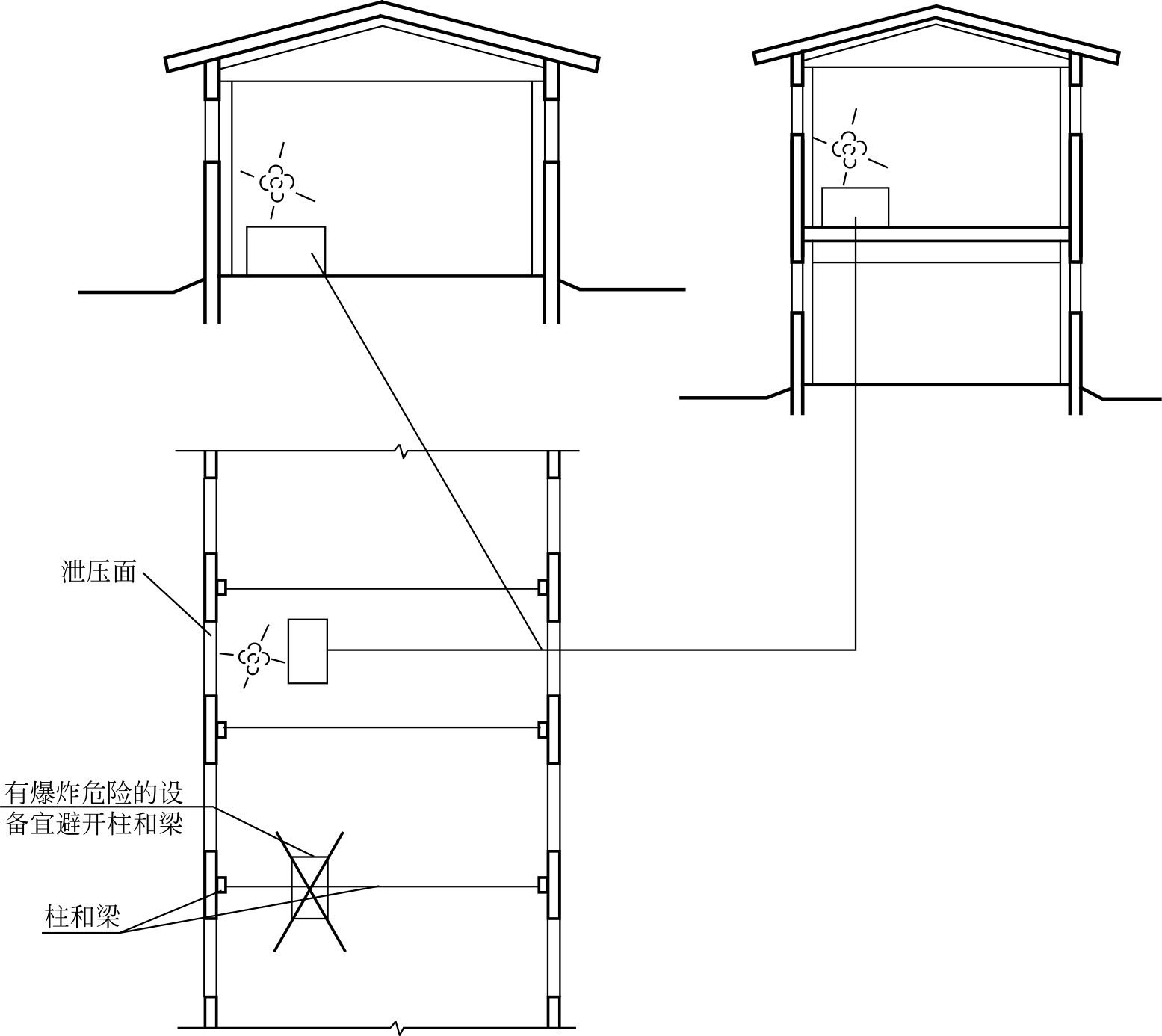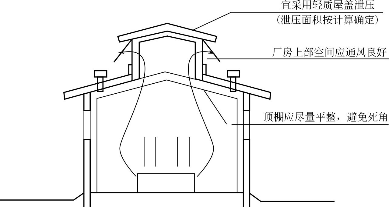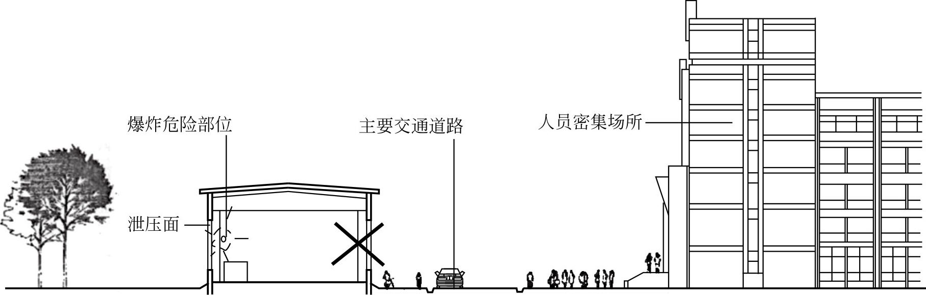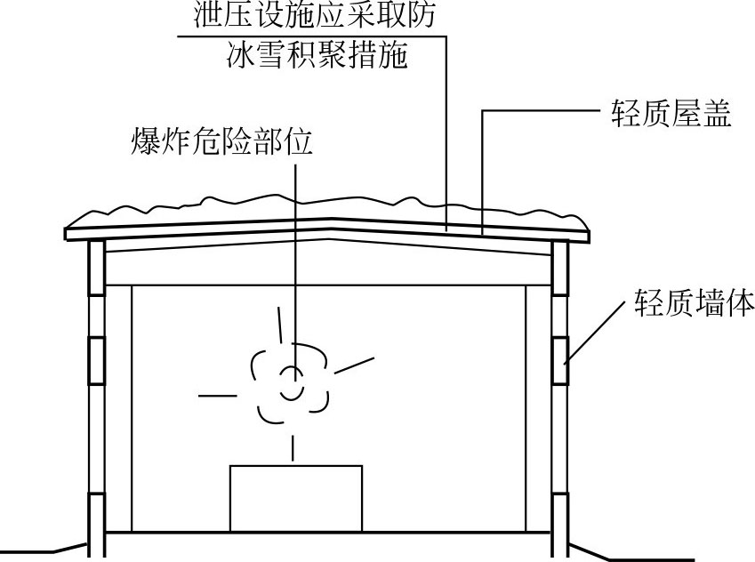 泄压设施的设置应避开人员密集场所和主要交通道路,并宜靠近有爆炸危险的部位,如图2-18所示。