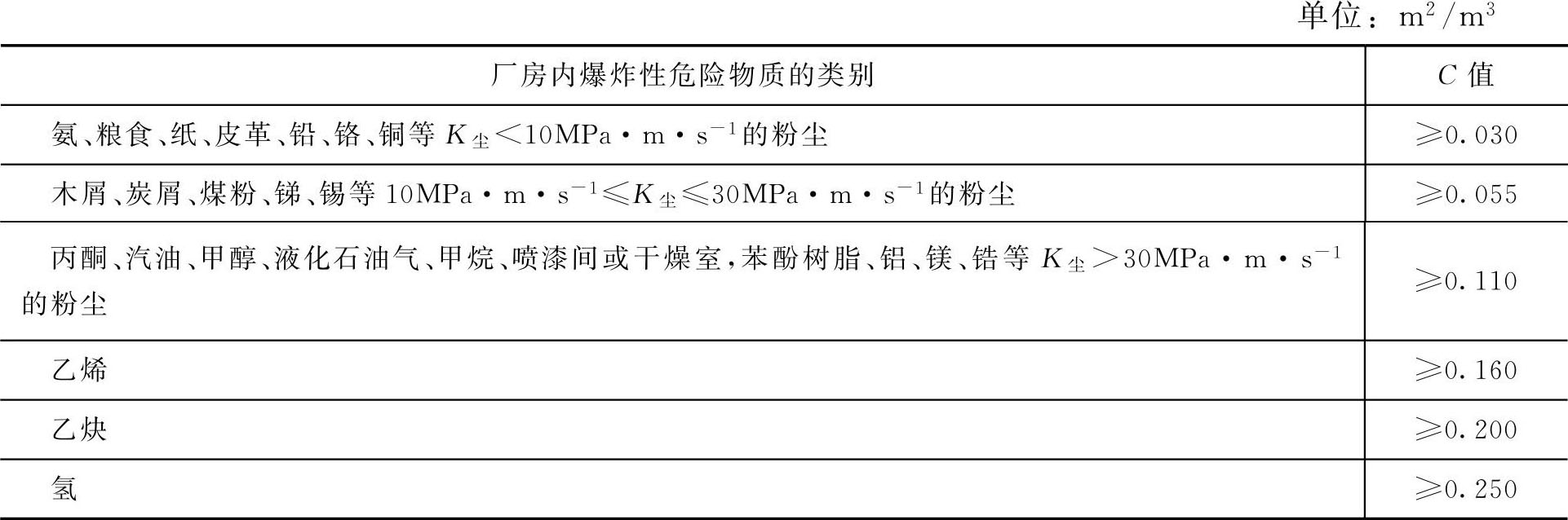 C ——泄压比,可按表2-13选取,m 2 /m 3 。