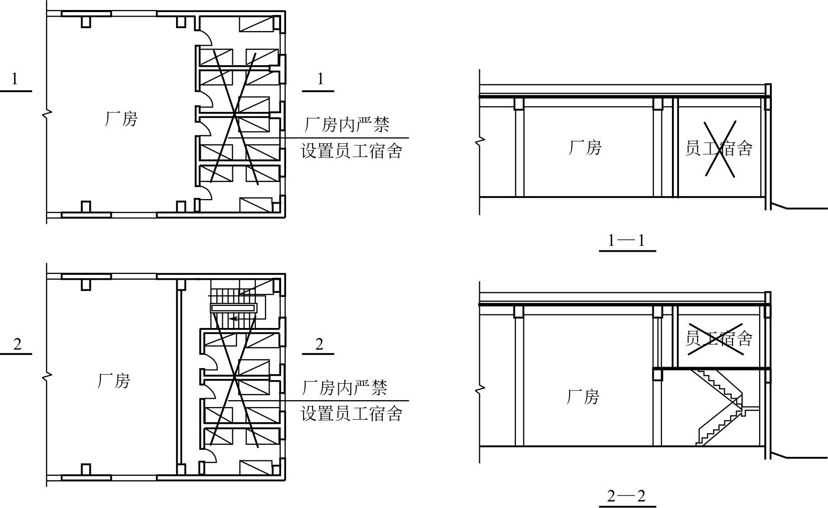 (5)员工宿舍严禁设置在厂房内,如图2-6所示。