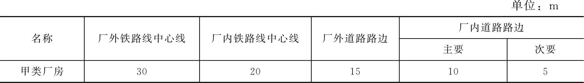 表2-9 散发可燃气体、可燃蒸气的甲类厂房与铁路、道路等的防火间距