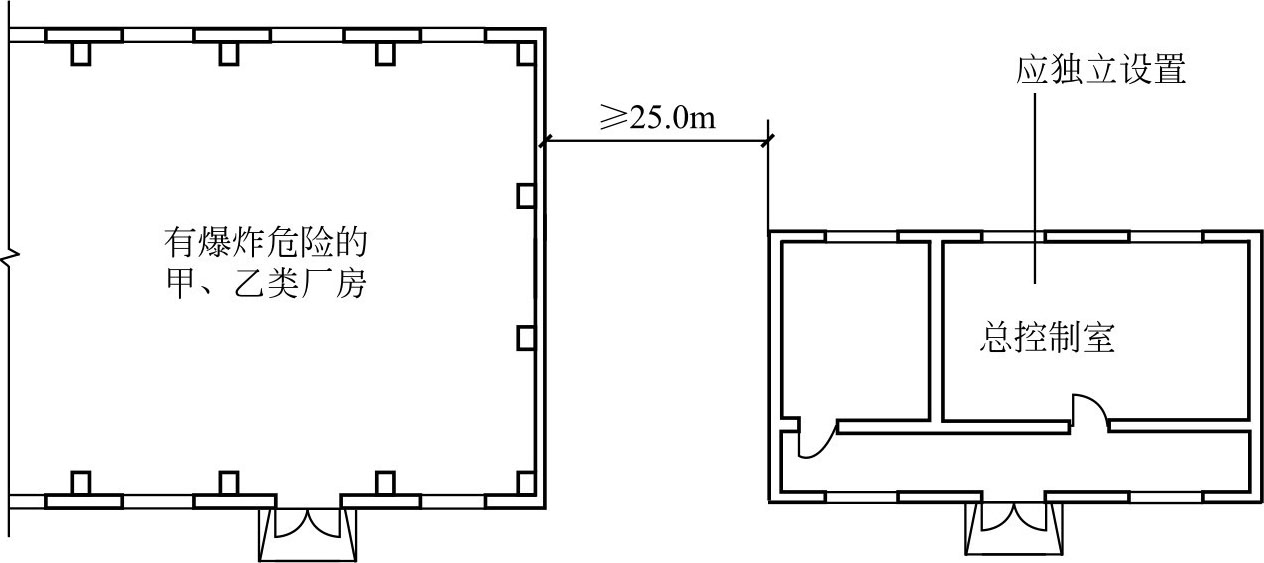 (8)有爆炸危险的甲、乙类厂房的总控制室应独立设置,如图2-23所示。