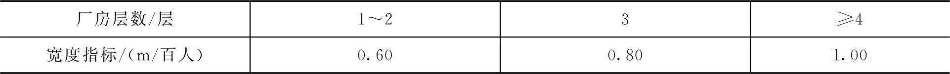 表2-15 厂房内疏散楼梯、走道和门的每100人最小疏散净宽度
