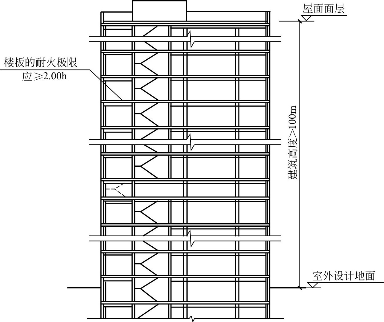 (3)建筑高度大于100m的民用建筑,其楼板的耐火极限不应低于2.00h,如图1-4所示。