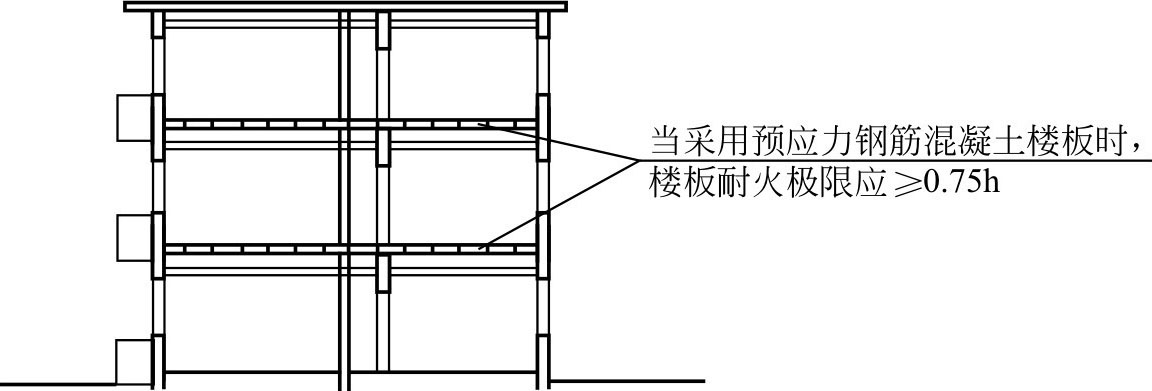 二级耐火等级多层住宅建筑内采用预应力钢筋混凝土的楼板,其耐火极限不应低于0.75h,如图1-7所示。