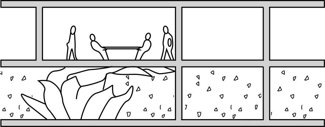 (1)水平防火分区 水平防火分区是指在同一水平面内,利用防火分隔物将建筑平面分为若干防火分区或防火单元,如图1-13所示。水平防火分区通常是由防火墙壁、防火卷帘、防火门及防火水幕等防耐火非燃烧分隔物来达到防止火焰蔓延的目的。在实际设计中,当某些建筑的使用空间要求较大时,可以通过采用防火卷帘加水幕的方式,或者增设自动报警、自动灭火设备来满足防火安全要求。水平防火分区无论是对一般民用建筑、高层建筑、公共建筑,还是对厂房、仓库都是非常有效的防火措施。