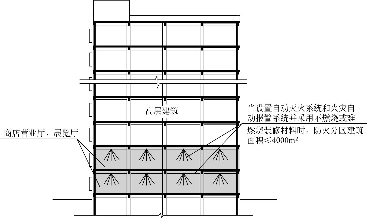 ①设置在高层建筑内时,不应大于4000m 2 ,如图1-18所示。