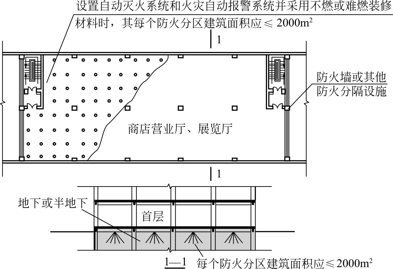 ③设置在地下或半地下时,不应大于2000m 2 ,如图1-20所示。
