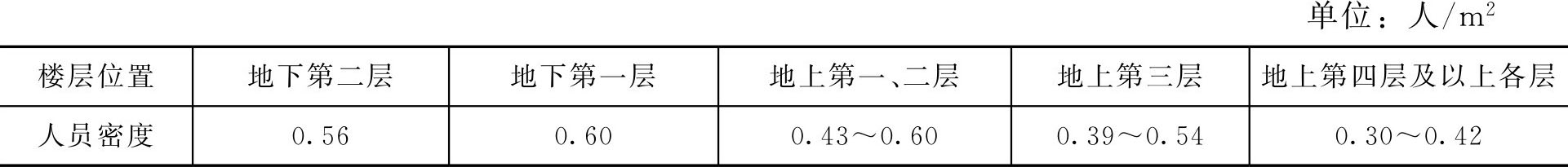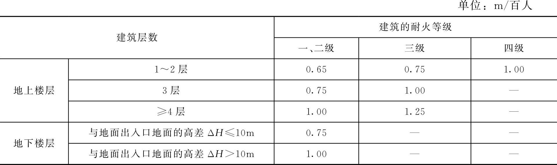 表1-11 每层的房间疏散门、安全出口、疏散走道和疏散楼梯的每100人最小疏散净宽度