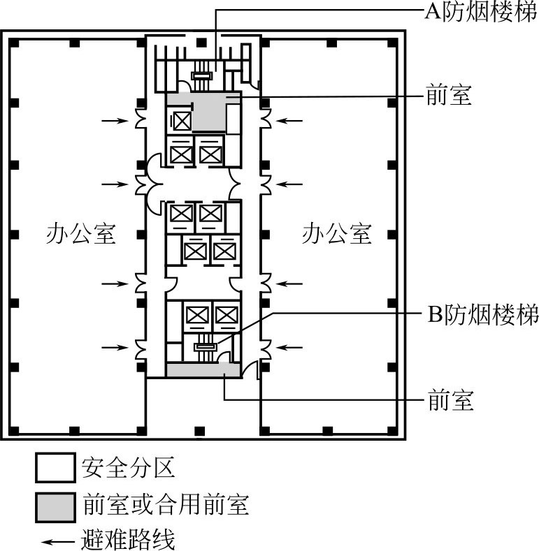 如前所述,进行安全分区设计,主要目的是为了人员疏散时的安全可靠,而安全分区的设计,也可以减少火灾烟气进入楼梯间,并防止烟火向上层扩大蔓延。进一步讲,安全分区也为消防灭火活动提供了场地和进攻路线。