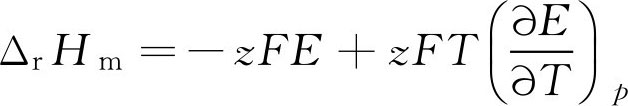 可逆电池的电动势是原电池热力学的一个重要的物理量。从上一节的讨论可知,它是一个可以精确测定的量。通过测得不同温度下的可逆电动势,便可求得相应电池反应的热力学函数的变化值、非体积功以及过程热。