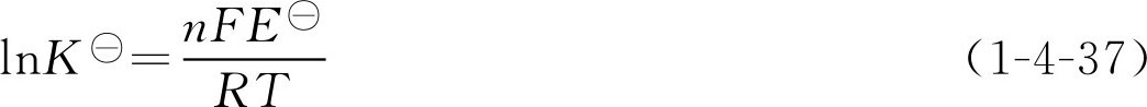 由式(1-4-37)可以计算电池反应的标准平衡常数及其特例,例如络合物的稳定常数和难溶物质的溶度积。