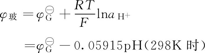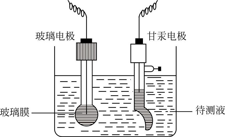 是一常数,其值与玻璃电极的性质和构造有关。测量时,把玻璃电极与一参考电极(通常采用甘汞电极)组成电池(见图1-4-13)。