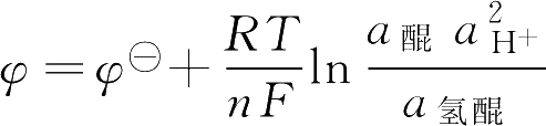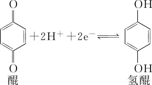所以,测得 E 便可由此算出pH值。这种方法使用方便,有不少优点。但它也有缺点,即被测溶液中不能含有氧化剂或还原剂,否则会和醌-氢醌起反应;另外,在pH>8的溶液中,氢醌易被空气中的氧所氧化,也不能使用。