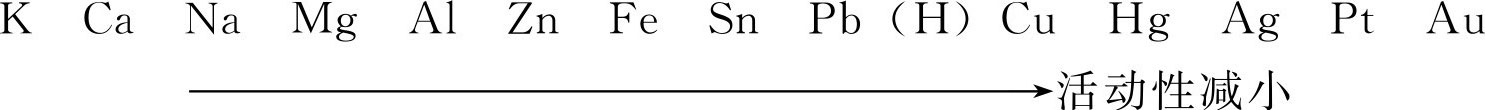 应用此规律可以判断反应的方向,即排在(H)前面的金属可以从非氧化性酸中置换出氢气,排在(H)后面的金属则不能,排在前面的金属可把后面的金属从其盐溶液中置换出来。