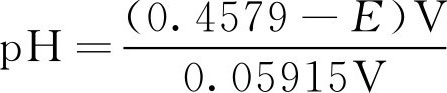 E =(0.6994-0.05915pH-0.2415)V=(0.4579-0.05915pH)V