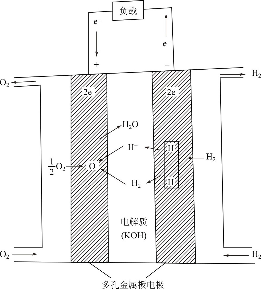 (b)碱性电解质 通常采用KOH、NaOH等强碱作为电解质,水作为溶剂。